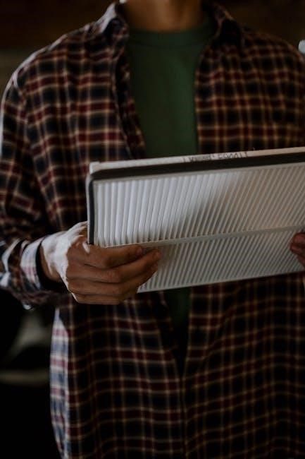 Install the new fuel filter, ensuring it’s oriented correctly according to the manual’s diagrams – fuel flow direction is critical. Securely reconnect the fuel lines, using new hose clamps if necessary to ensure a tight seal. After reinstallation, inspect for any fuel leaks before starting the engine. Regular fuel filter replacement, as outlined in the manual, maintains optimal engine performance and prevents fuel-related issues.